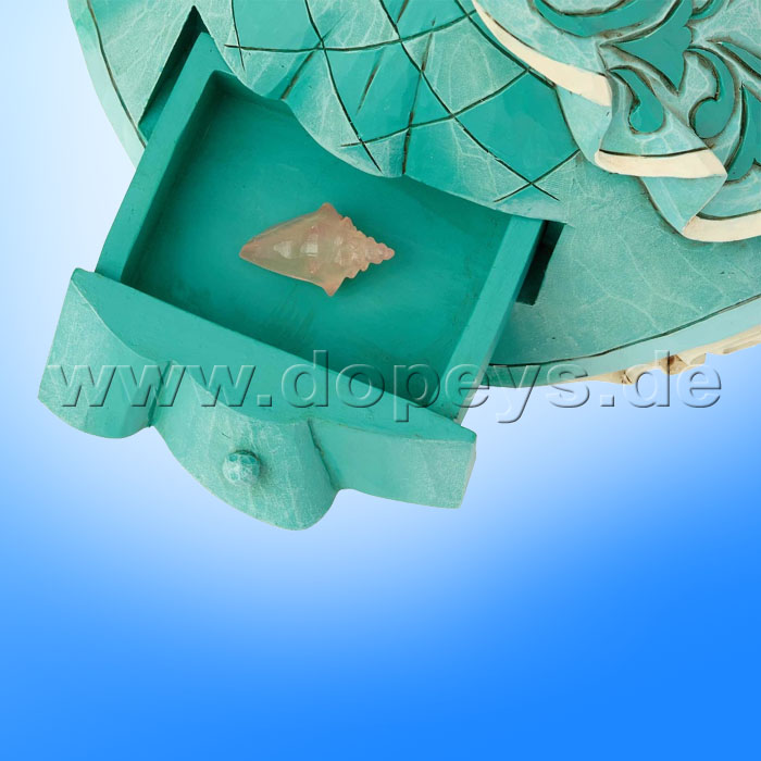 Jim Shore's newest collection of princess figurines feature hidden compartments with space for your most treasured possessions. Sculpted from stone resin, Ariel tribute shows the princess in her turquoise gown, detailed with a drawer that is perfect for hiding jewelry.